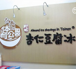 口味多樣的杏仁豆腐。除了冰品、甜品外,還有甜湯和冷飲,牆上斗大的扛棒,寫著該店的精神傳承。連續榮獲府...