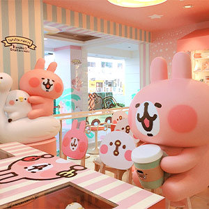 主題設計店內的空間,除了看得到超大型的P助與兔兔、各式造型的裝潢,店內也設有周邊商品的販售區域!讓粉絲們除了拍照打卡也可以買得到!各位卡娜赫拉迷妹們還不衝嗎~