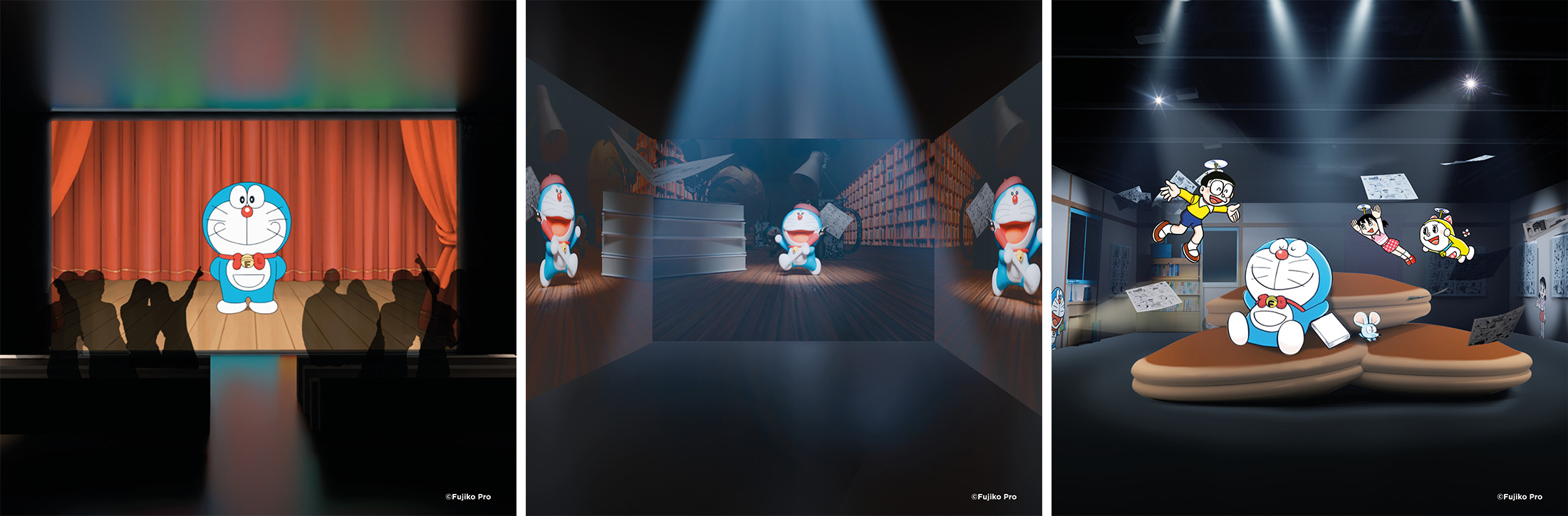 展區精心打造「100%微型劇院」,大螢幕獨家放映由日本團隊專為台北和高雄展覽製作的原創短篇動畫!透過鏡面打造空間延伸感的「無限哆啦A夢世界」,及結合3D光雕投影漫畫單行本的「大雄漫畫閱讀房間」,走進微型劇院彷彿置身在充滿奇幻與樂趣的哆啦A夢冒險故事中。