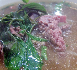 粉紅色牛肉經由熱湯下去讓她慢慢熟,吃起來無比的軟嫩而且帶有著一點香甜的滋味再跟著湯一起攪和~再跟著湯...