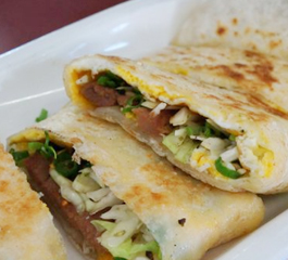 「私房燒肉蛋餅」。以早餐的蛋餅來說,它的蔥量十足,燒肉味美,這份蛋餅,好吃!6吋大的拼盤,裡頭有蛋、...