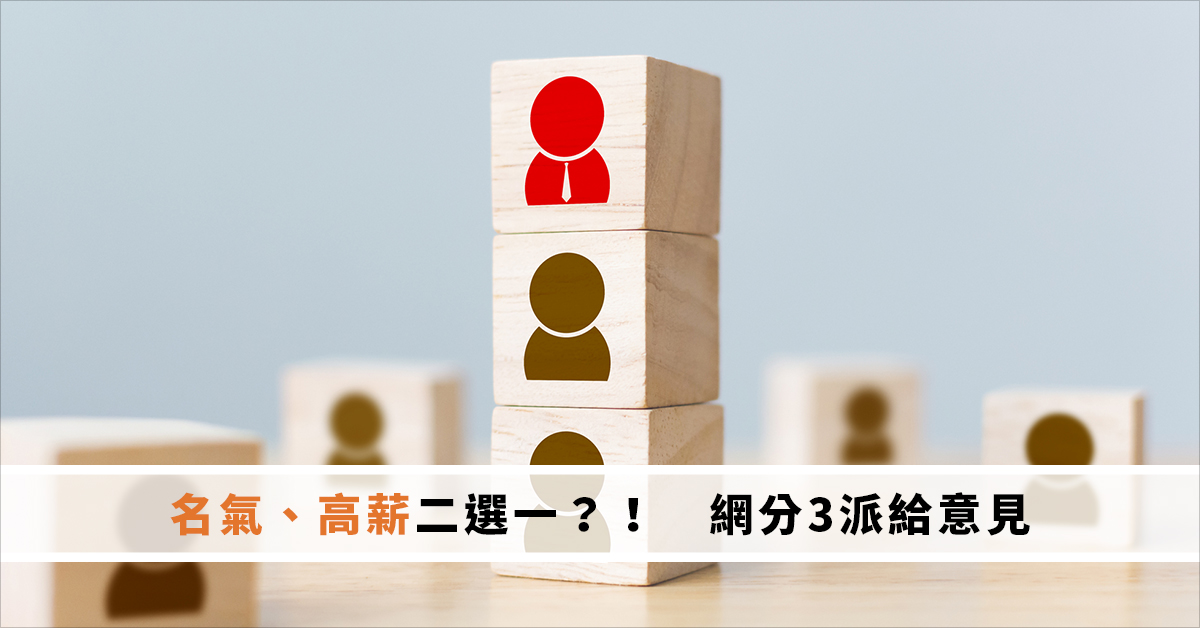 薪水高、名氣小VS薪水低、名氣大,這2個難分難捨的選擇題的確讓人難下決定